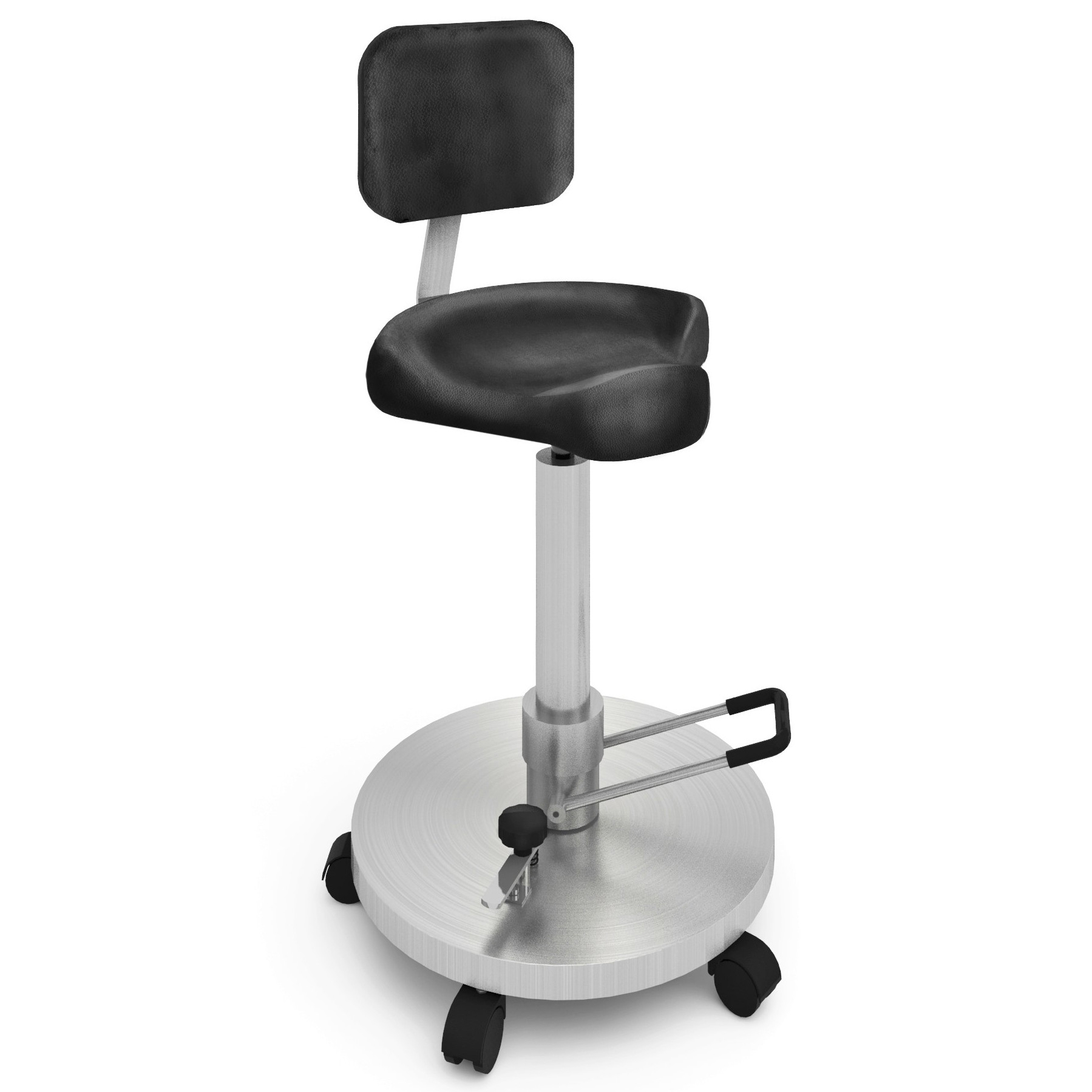 Sedile per Chirurgo con sella anatomica, realizzato integralmente il Acciaio Inox 18/10 AISI 304.