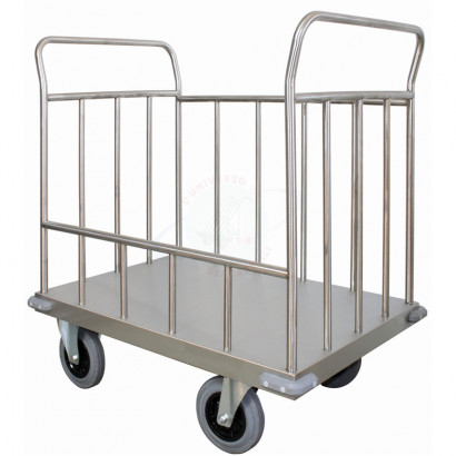 Completamente costruito in acciaio inox AISI 304 satinato è adatto a qualsiasi tipo di trasporto e trova impiego nei magazzini, lavanderie ed in tutte le situazioni che richiedano trasporto di pesi considerevoli.
