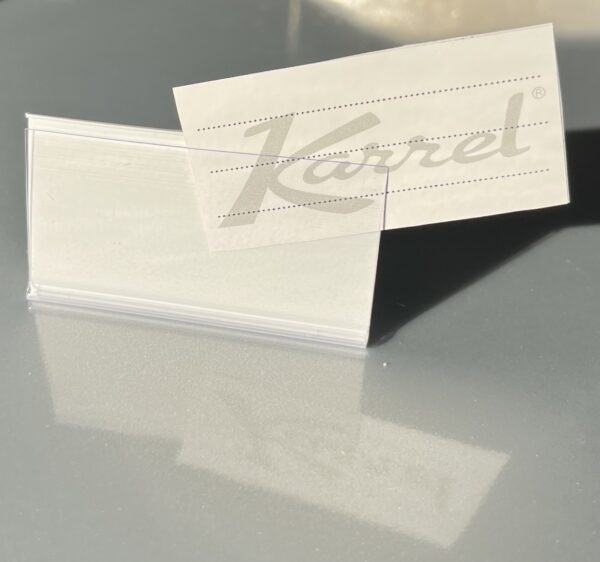 Porta etichetta per terapik dose in abs trasparente applicabile al cassettino, completa di cartellino intercambiabile