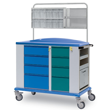 PARTE SUPERIORE: ampio piano d’appoggio in materiale plastico realizzato in basso rilievo, senza spigoli vivi per facilitarne pulizia e disinfezione. Altezza da terra mm 1000.