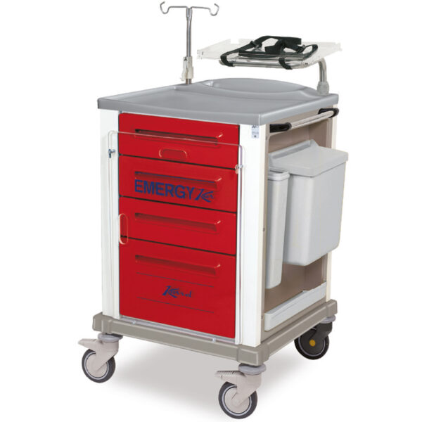 K816419X – CARRELLO EMERGENZA SMALL IN TECNOPOLIMERO CON CASSETTI ROSSI E STRUTTURA IN ACCIAIO INOX