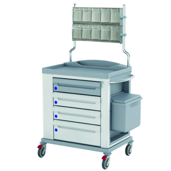 KSTD-MED7: CARRELLO MEDICAZIONE STANDARD IN ACCIAIO VERNICIATO CON CHIUSURA A CHIAVE E DISPENSER A 10 CASSETTI
